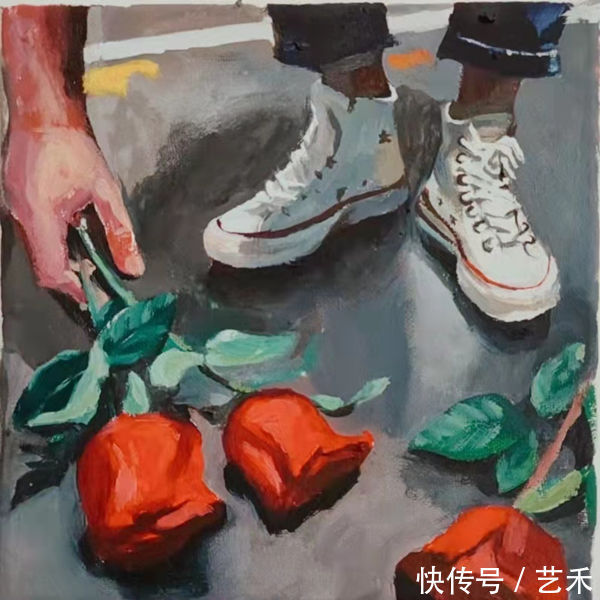 王余油画作品《雨中的玫瑰》